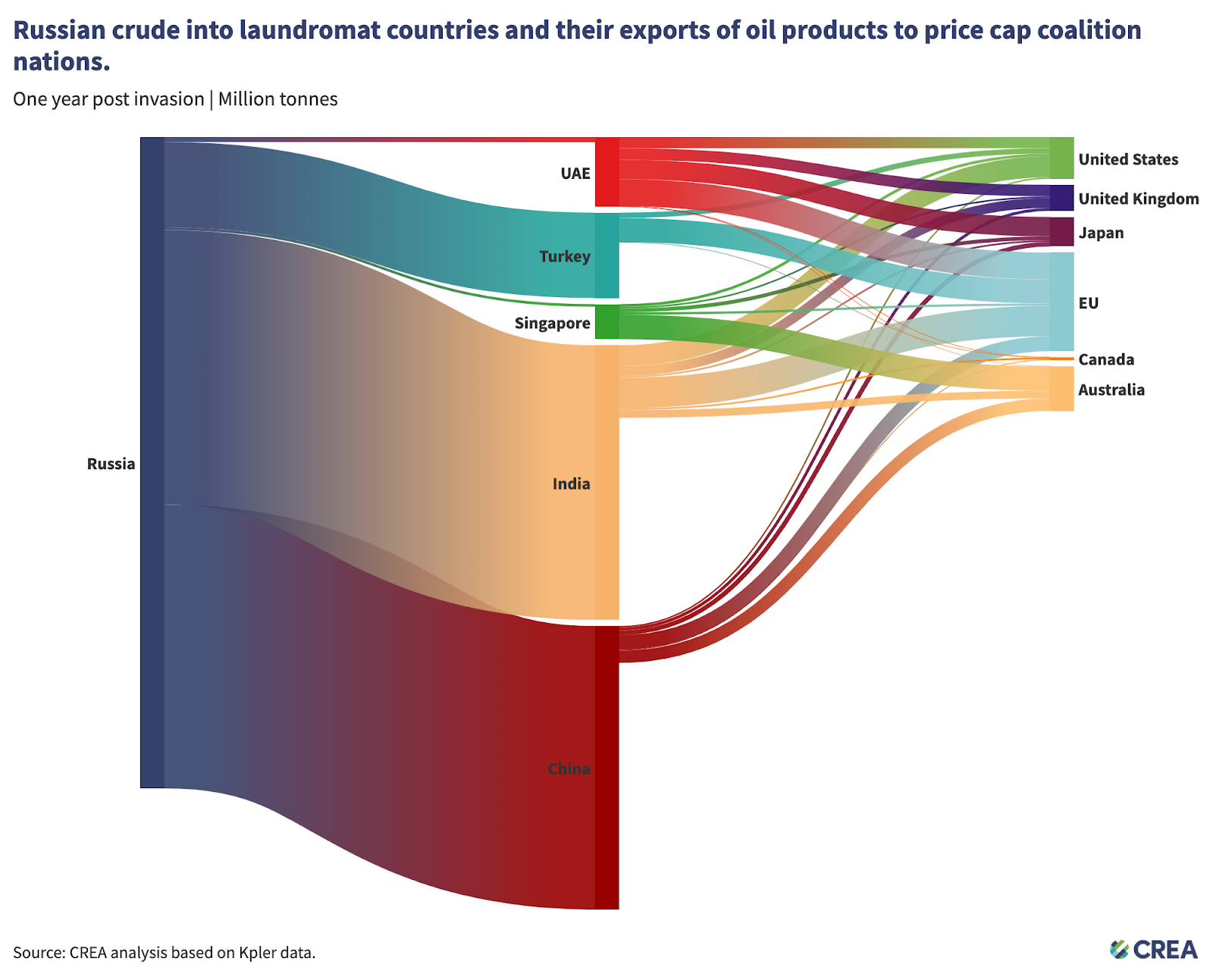 The report named the cluster of nations involved in the game as 'laundromat'. They are China, India, UAE, Singapore and Turkey; these countries have bought Russian oil in great volumes and then launder into the very nations that publicly turned their back on Russian oil - as a finished product.